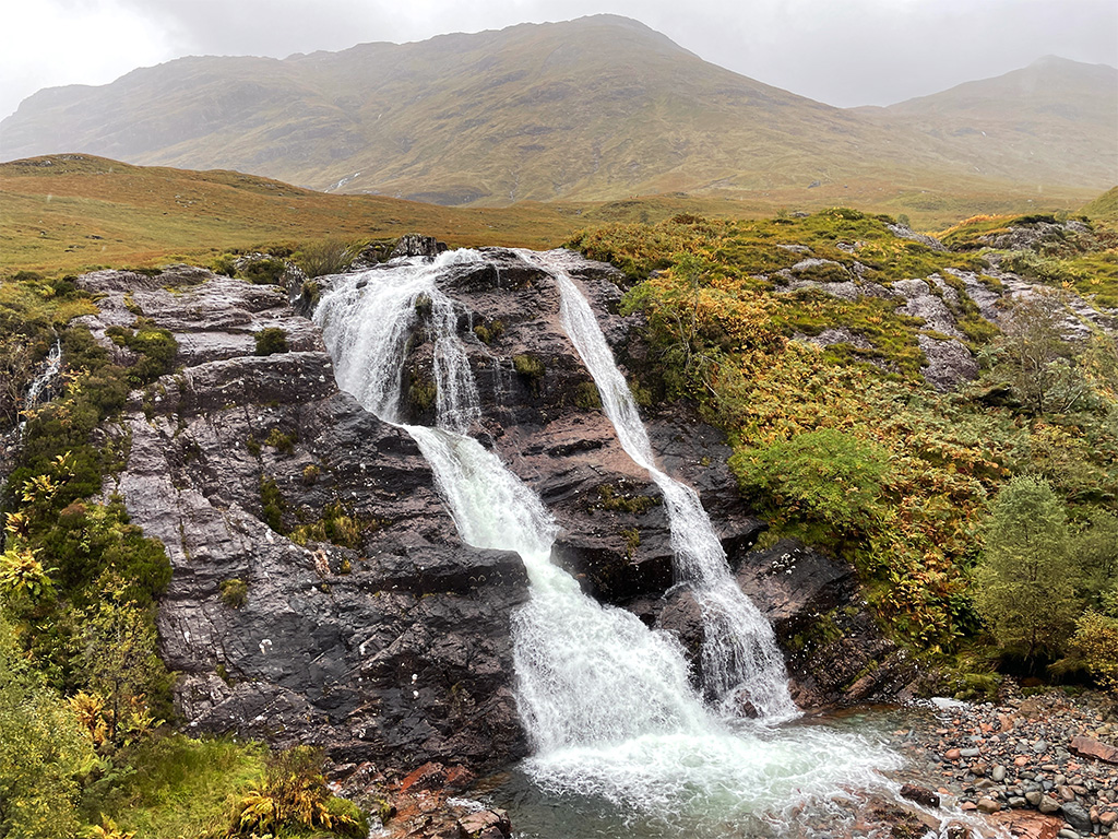 Ich löffel noch mein Porridge und mache mich dann gemütlich auf den Weg Richtung Glen Coe, zu der Langangarbh Hut, zu den Wasserfällen, weiter durch das Tal, bis zu den Three Sisters, dann wollte ich weiter zum Glencoe Visitor Centre, da soll es eine Bushaltestelle geben. Leider ist nicht klar, ob es die Bushaltestelle wirklich gibt (Wisst ihr es?! Schreibt es mir gerne mal in die Kommentare!)