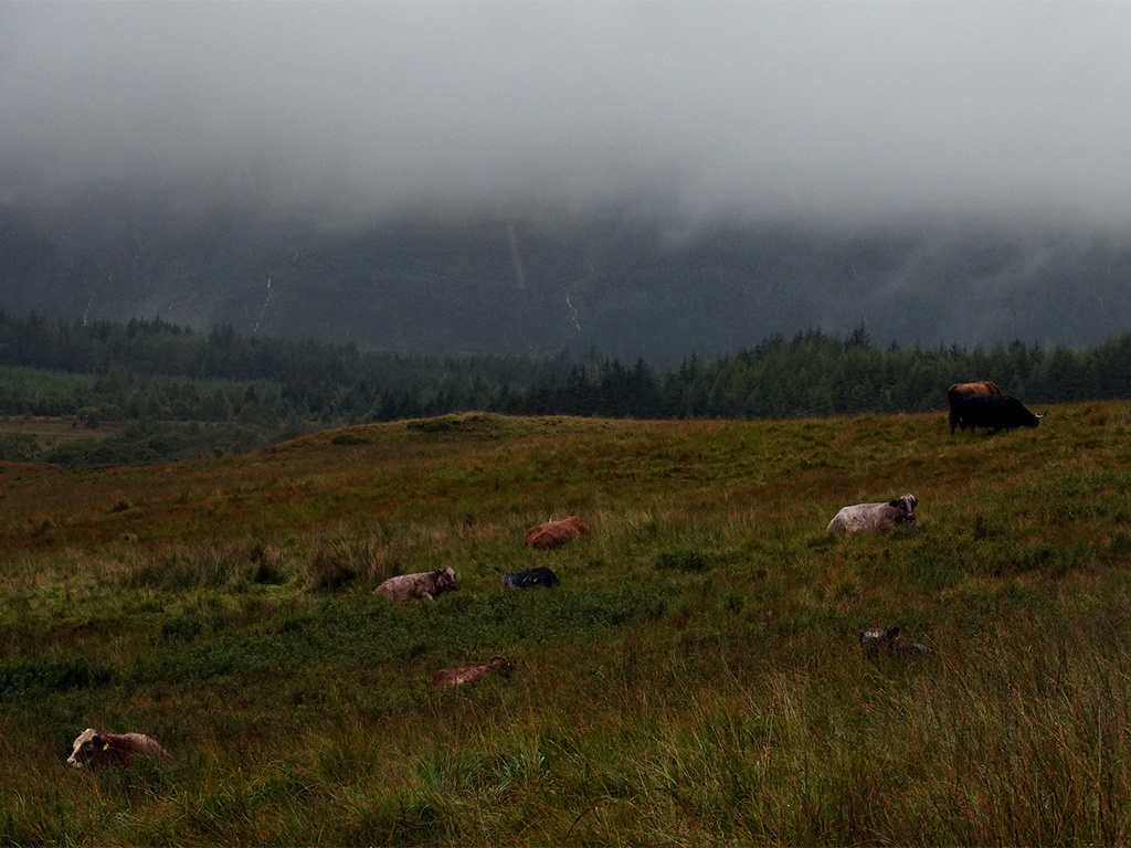 Immerhin sehe ich einige auf ihrer Weide rumliegende Highlandrinder, die aber auch ganz schön bedröppelt dreinschauen. Wenn die Kuh liegt, gibt es schlechtes Wetter, hab ich jedenfalls mal gelernt. Stimmt. Trotz neuer Regenhose komme ich pitschnass in Bridge Of Orchy an und wärme mich erst mal am Kamin im Pub des Bridge Of Orchy Hotels.