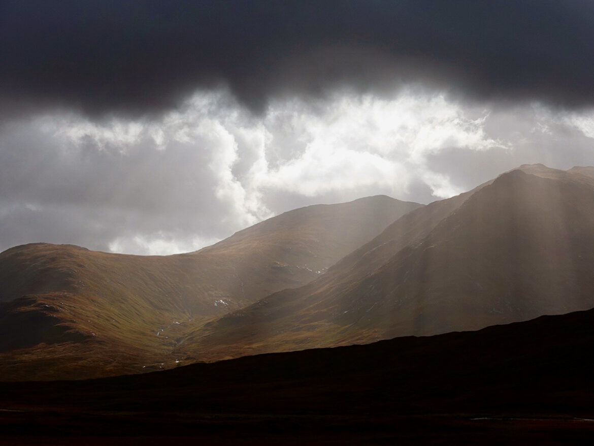 Wie schnell Wetter in den Bergen umschwenken kann, erfahre ich dann aber wenig später. Innerhalb weniger Sekunden, fegt ein eisiger Wind über die Highlands.